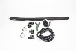 Refueling kit for Radium Engineering FCST-X equipped fuel cells. Featuring remote mounted filler with screw off cap, 1.5" x 3ft fill hose, angled fill neck and 8AN vent line.